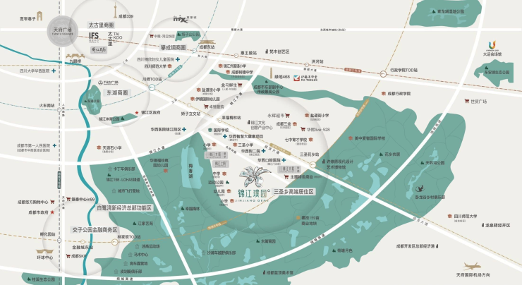 医疗:华西医院锦江分院(建设中),华西附二院锦江院区、华西口腔锦江门诊,华西智慧大健康产业、四川锦欣妇女儿童医院