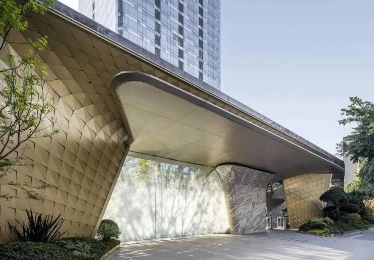 建筑外立面由时尚教父乔治·阿玛尼亲自设计,从中国传统"四君子"中汲取灵感。初始方案采用竹节元素,后为契合成都温润的城市气质,最终选定兰草为设计蓝本。这一独具匠心的艺术造型已成为成都新晋城市名片。