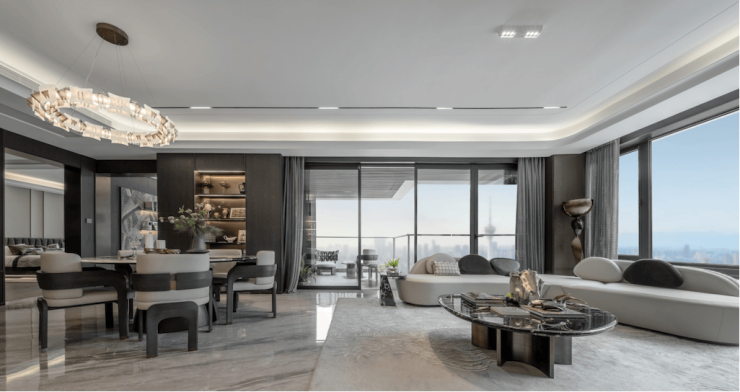 约80㎡墅级社交厅堂采用LDKG一体化设计,突破传统空间界限,为家庭成员互动创造更多可能,让天伦之乐在开阔空间中自然流淌。