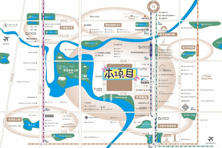 项目地处天府新区华阳综合服务区,海昌路锦江生态版块, 占据城市发展中轴,享有CBD级一线城市配套,稀缺生态覆盖、巨幕江景环绕,置业投资首选