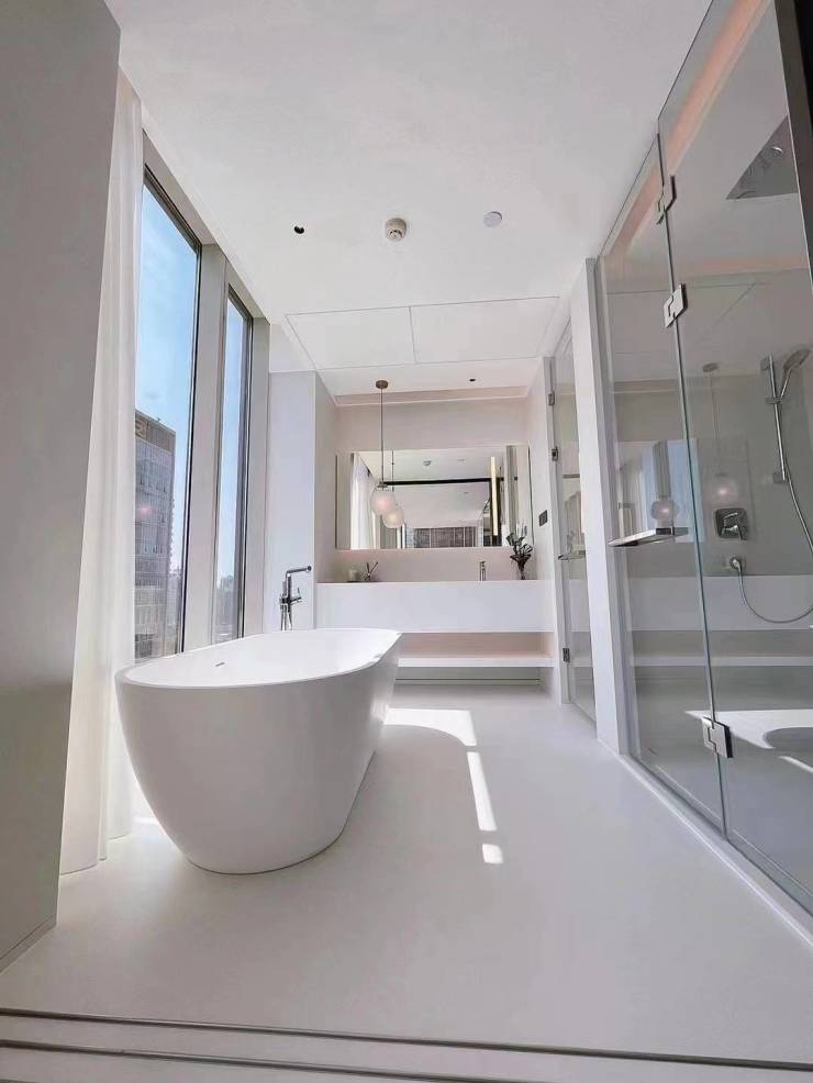 卖点七:盈嘉配备奢华精装,是顶级轻奢服务式公寓。中央空调、新风、地暖全带,洁具杜拉维特,五金汉斯格雅等,盈嘉专为高管、海归等金字塔人群提供至尊服务。