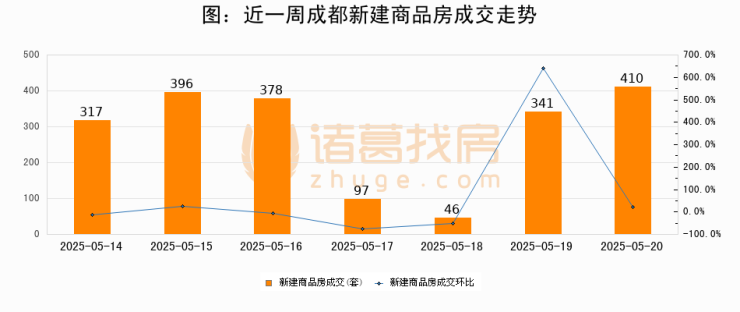 【成都成交日报】05月20日新房成交410套、二手房1262套;涨价房源55套
