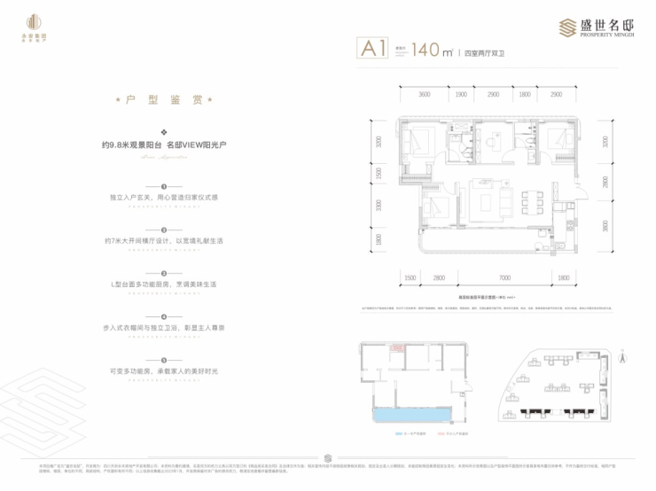 A1户型 140㎡四房:南北通透,双主卧设计,打造改善型品质居所