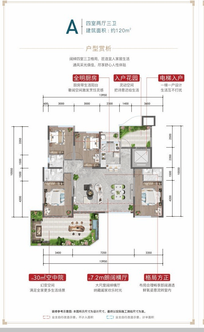 A(A-1)户型一120㎡实得180㎡,2T2户