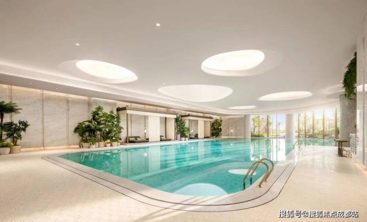 会所面积达15000平米,由孟也设计,包含恒温泳池、私宴厅、健身房等设施,户均享受58.6平米,投入奢华。