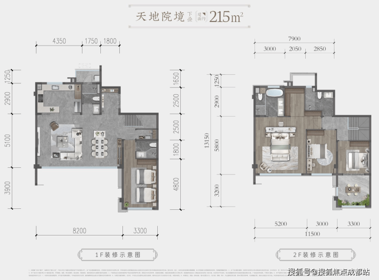 下叠(215㎡):清水交付,配备花园与地下室,花园面积约50㎡,地下室可改造为多功能空间,满足高端改善需求。
