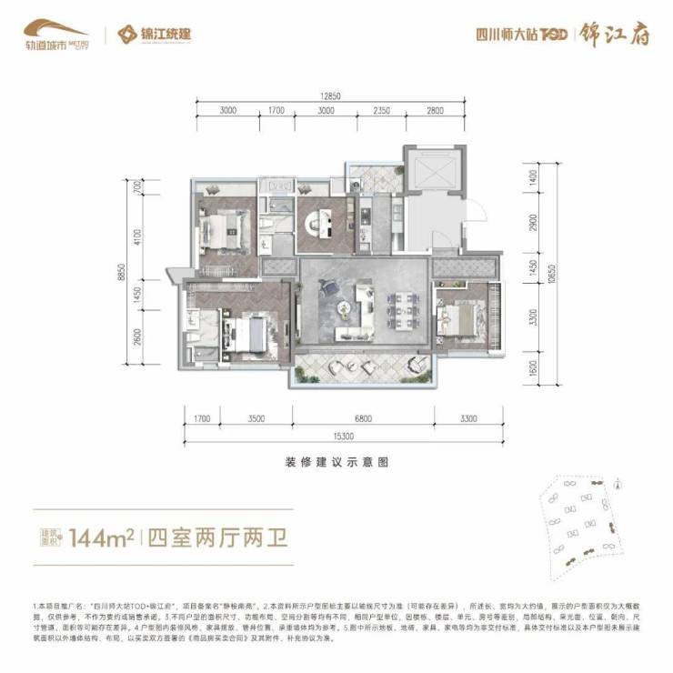 锦江府·南苑的产品定位比较纯粹,小区14栋住宅全部都是独栋独单元的T2板楼,共有建面约175㎡、建面约207㎡、建面约144㎡三款,均为四房设计改善属性相当明显。