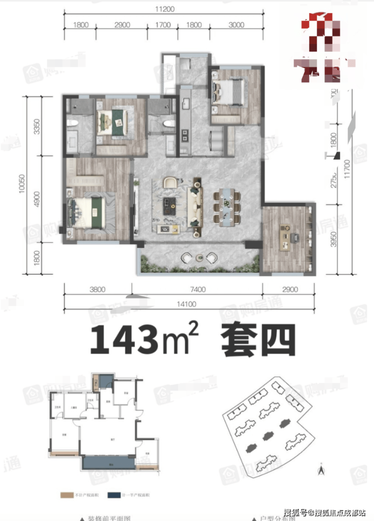 产品面积段:100-143㎡(三至四房)