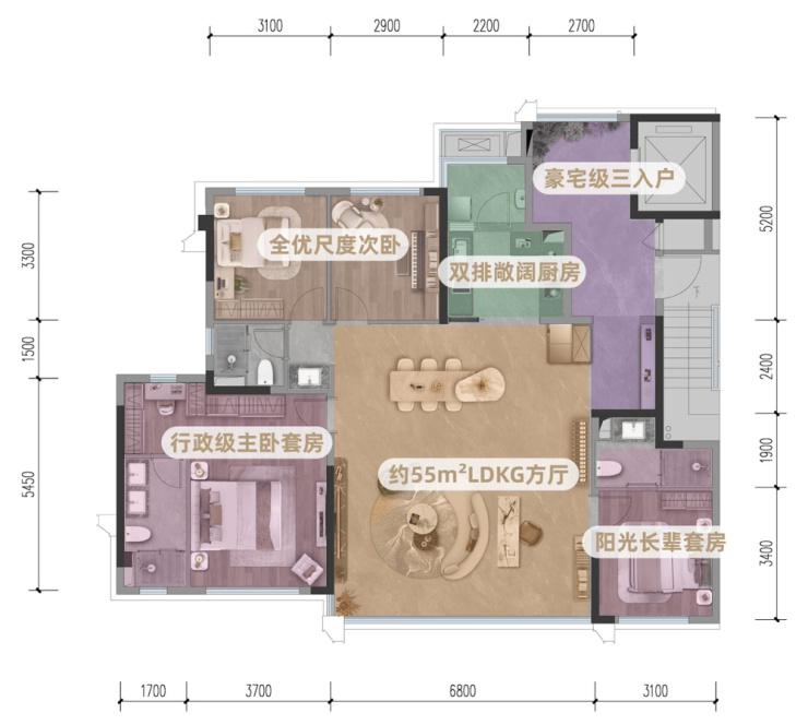 【LDKG】约55m²墅级宽厅,中西双厨+多功能空间,高定生活美学