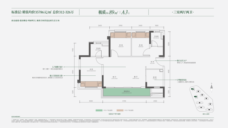 A户型-极质89-建面约89㎡(三室两厅两卫)