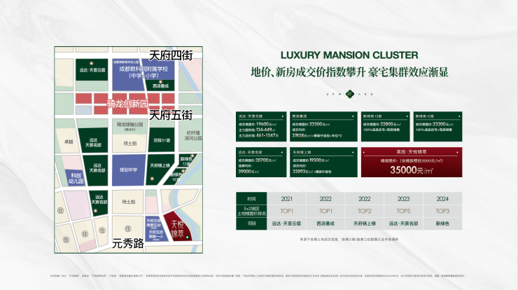 2021年-2024年,大源西占据成都土拍价绝对制高点,板块价值超强兑现。