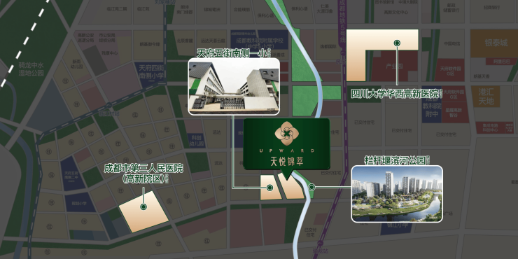 大源顶级教育体系,成都教科院附属学校东区西区(已投用)、天府五街南侧小学(已建成)、成都七中高新校区(已投用)、成都美视国际学校(已投用)