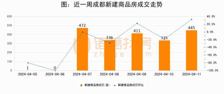 【成都成交日报】04月11日新房成交445套、二手房939套;涨价房源5套