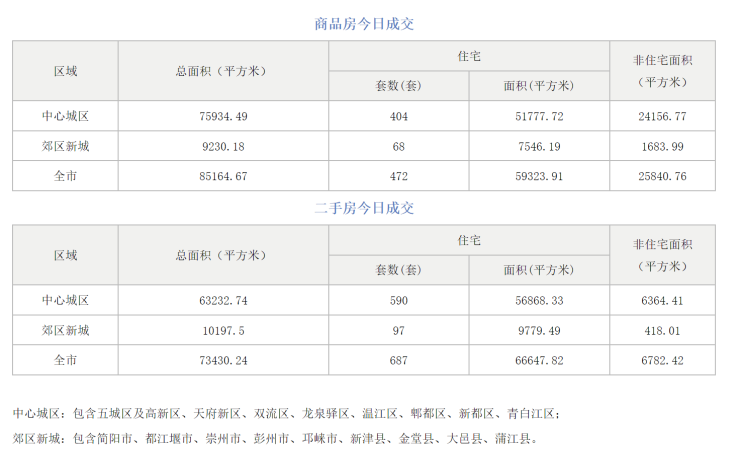 据成都市住建局住建蓉e办数据显示,2022年8月24日,成都市全市商品房成交(备案)总面积85164.67平方米,其中其中商品住宅成交(备案)472套,商品住宅成交(备案)面积59323.91平方米。二手房成交(备案)总面积73430.24平方米,其中二手住宅成交备案687套,二手住宅成交(备案)面积66647.82平方米。