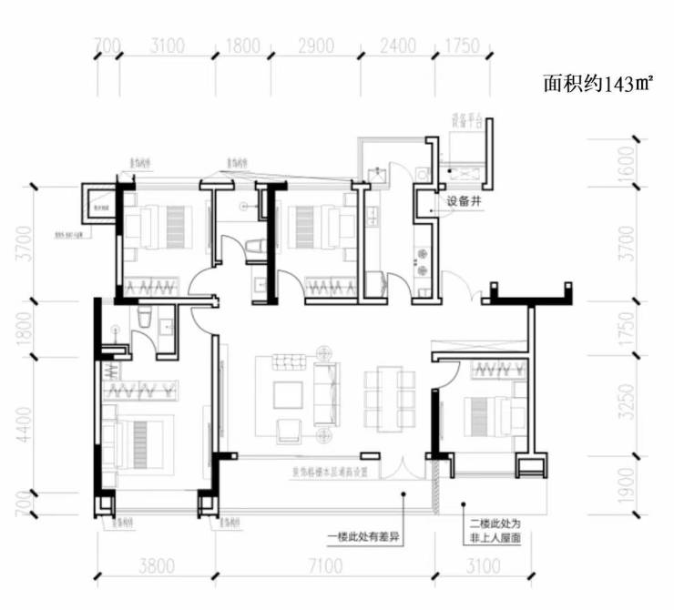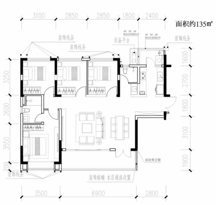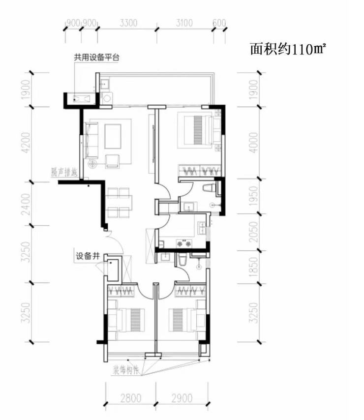 总层高:二期12-17F(一楼4.5米架空层无住宅)三期9-17F