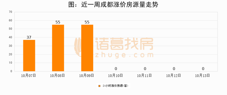 根据诸葛找房数据显示,成都24小时涨价房源量为0套,较10月12日持平。