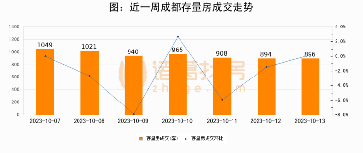 从存量房来看,2023年10月13日成都存量房单日成交896套,比昨日增加2套,环比上涨0.2%。从近一周存量房成交来看,成都存量房日均成交套数为953套,10月13日单日成交896套,低于近一周平均水平6%。