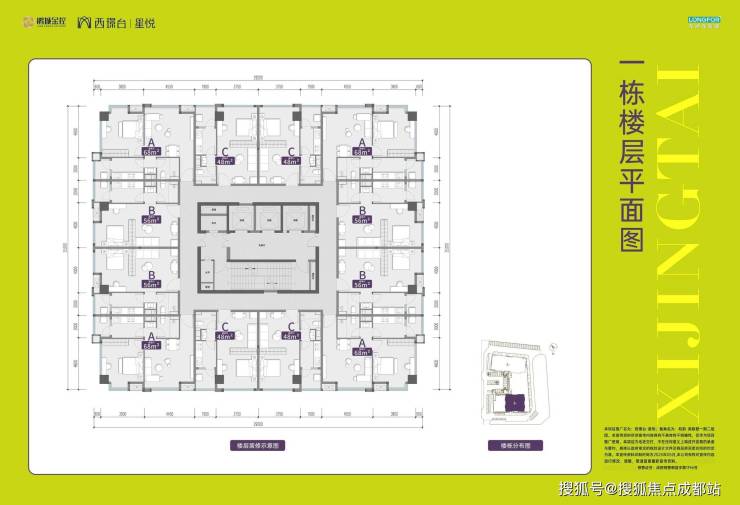 户型分布:1#楼约48㎡(标间)、约56㎡(标间)、约68㎡(套一)三个户型;2#楼约46㎡(套一)、约53㎡(套一)、约60㎡(标间)三个户型。(具体户型及分布见楼层平面图)