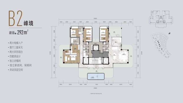 顶楼(清水)面积:282㎡-325㎡;总价:730万-1000万