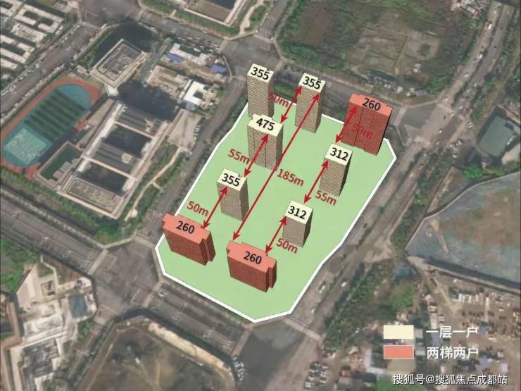 2.南北跨度240米,可以做出大楼间距