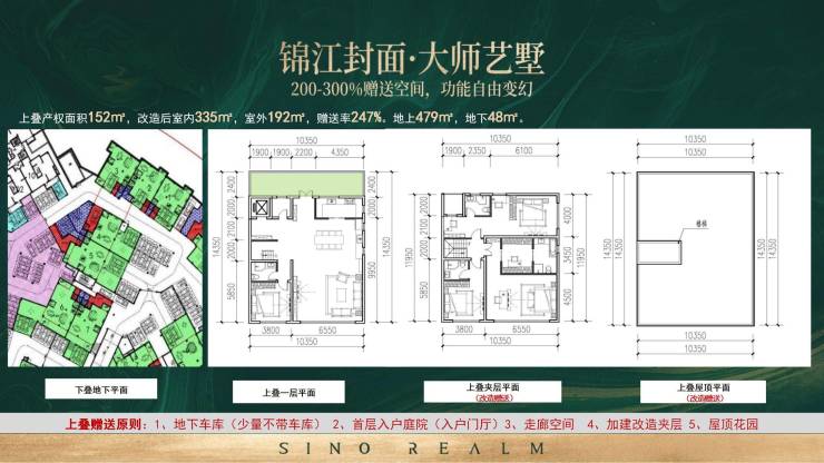 改造后室内264-310㎡,室外36-43㎡;