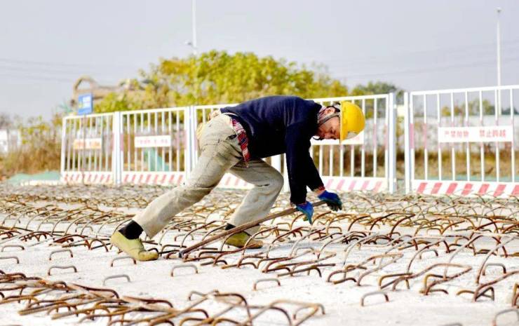 双楠大道西延线建设项目桥梁工程师夏可飞就来到杨柳河中桥施工现场,与工人师傅们一道进行桥面铺装前期工作。