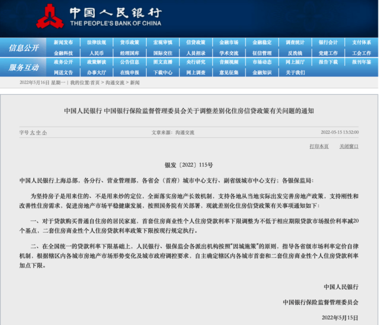 5月15日,在央行和银保监会联合下发的关于“房产信贷”官方文件中明确指出,首套房贷款利率下限直接下调20个基点。