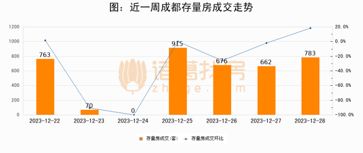 从存量房来看,2023年12月28日成都存量房单日成交783套,比昨日增加121套,环比上涨18.3%。从近一周存量房成交来看,成都存量房日均成交套数为552套,12月28日单日成交783套,高于近一周平均水平41.8%。