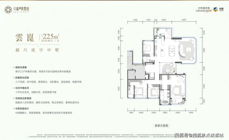 建面约 230㎡ 四房三卫(总价约 800 万起,楼王户型)