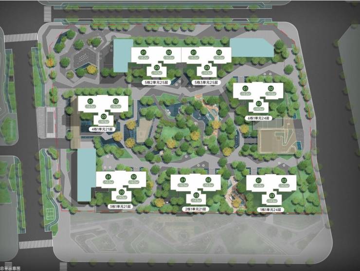 54号地块占据396米地标旁绝佳位置,三面公园环抱,打造台地式峰景社区。