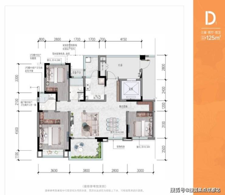 空间配置:二期2梯2户、三期含1梯2户及2梯3户