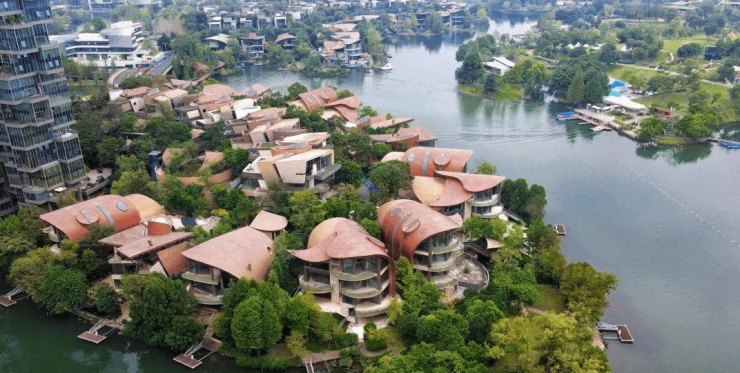 8.原溪岸:位于滨湖区亲水湖居,大隐于一城繁华中央。抬头可见蓝天白云,低头可见翠绿湖岸,现代湖岸太空舱风格独栋别墅,全新理念升级幻主,紧邻山林溪谷公园,湖景依然很棒。