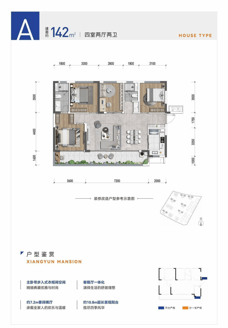 祥云越府位于天府新区兴隆湖旁,由“精工建造专家中国铁建+生活美学大师大悦城控股”世界500强双央企联合开发。总占地约62亩,由10栋2T4的14-18F阔景小高层和5栋Block独立商业街区组成。以“生态·公园家”为核心理念,约2.0低容积率、约35%绿地率,筑造约30000M'美学园境,构建"一轴一心两园多境"园林体系,拥享低密生活美好时光。项目在售产品为小高层,主推建面112-142㎡,单价18000元/㎡起,预计2024年6月全装修交付。