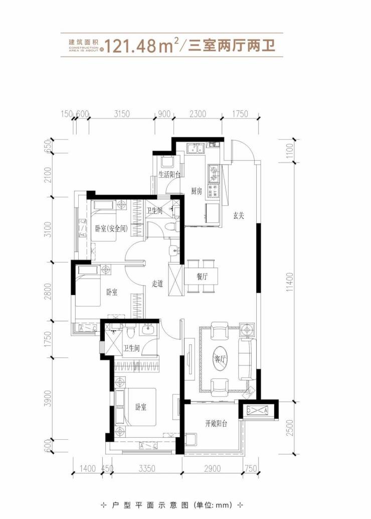 三居户型:科学功能分区,270°观景阳台衔接阔绰客厅,主卧套房设计保障私密性,次卧连接景观阳台拓展生活场景。