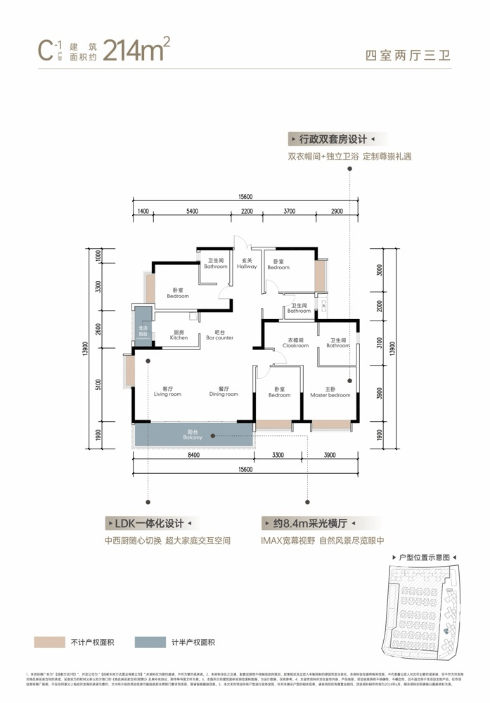 214㎡奢阔平层:8.4米全景横厅,双主卧套房