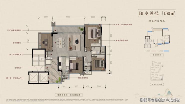 项目共规划5种户型(128-191㎡),当前主推130㎡、143㎡四居,188㎡为终极改善旗舰户型,精装交付,配置国际一线品牌(如杜拉维特卫浴、博洛尼橱柜)。