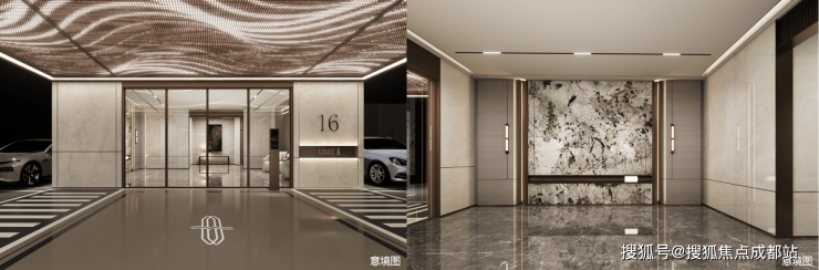 超大面星空顶奢感车库 · 地下精奢入户大堂: