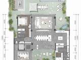 该户型以"焕变逸趣空间"为核心设计理念,通过书房、部分光厅与入户储藏室的灵活组合,打破传统空间局限,满足多样化家庭生活需求。LDKB一体化全景家庭舱设计,创造约270°环幕观景视野,营造开阔通透的视觉体验。创新边厅布局长度突破45米,重新定义家庭互动空间格局。主卧采用度假酒店式设计标准,开间约4.2米,配备独立步入式衣帽间,构建高品质休憩空间。同时特别关注下一代成长需求,确保每位家庭成员都拥有独立的私密领域。