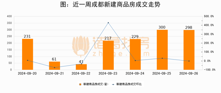 【成都成交日报】09月26日新房成交298套、二手房739套;涨价房源242套