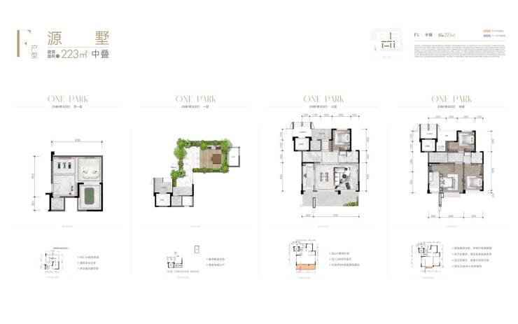 下叠面积:220-256㎡ 花园50-130㎡;地下室约45-70㎡ 总价628-743万