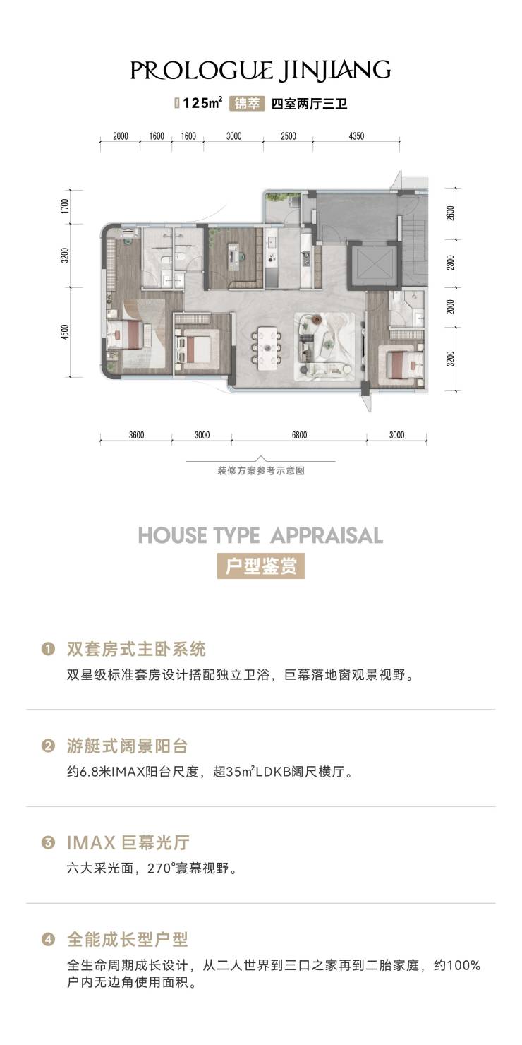 产品面积:125-173㎡ 户户瞰江濠宅;179-235㎡ 定制天际顶跃