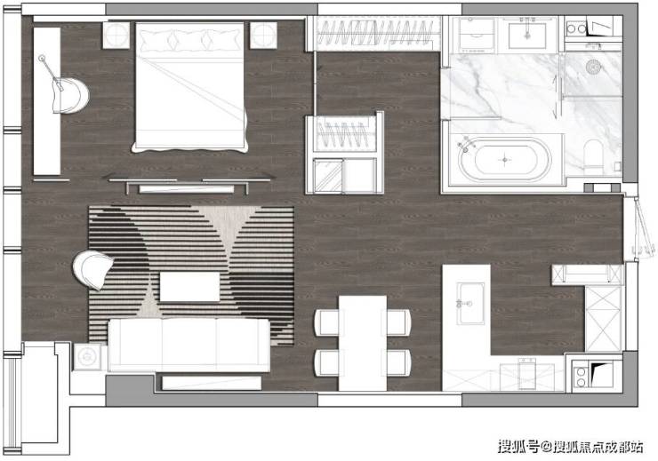 空间设计:创新采用LDK一体化布局(客厅、餐厅、厨房一体化),配备多功能吧台,强化社交属性。以60㎡户型为例,28㎡奢阔主卧套间舒适度堪比160㎡平层;163㎡户型则打造78㎡超大餐客厅与68㎡全景主卧。