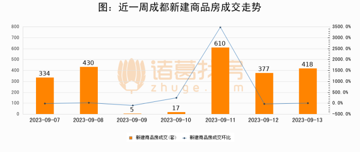 【成都成交日报】09月13日新房成交418套、二手房741套;涨价房源173套