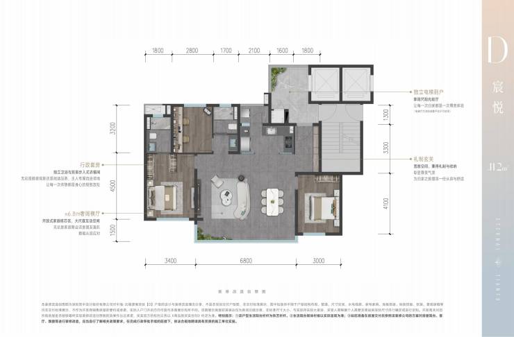 D户型 约112㎡三房两卫