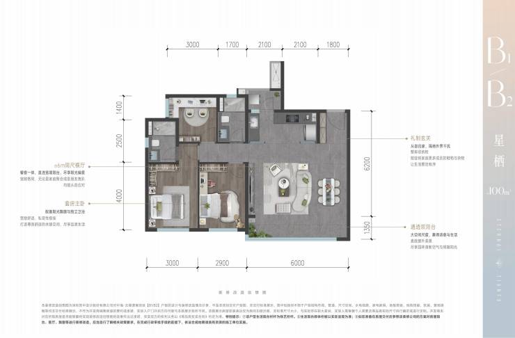 B1/B2户型 约100㎡三房两卫