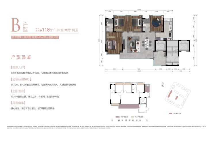 · 118㎡四房:双套房配置,南向双阳台系统