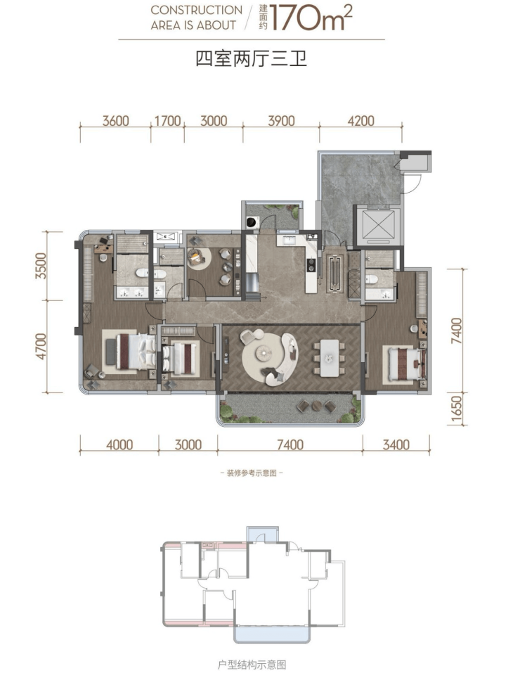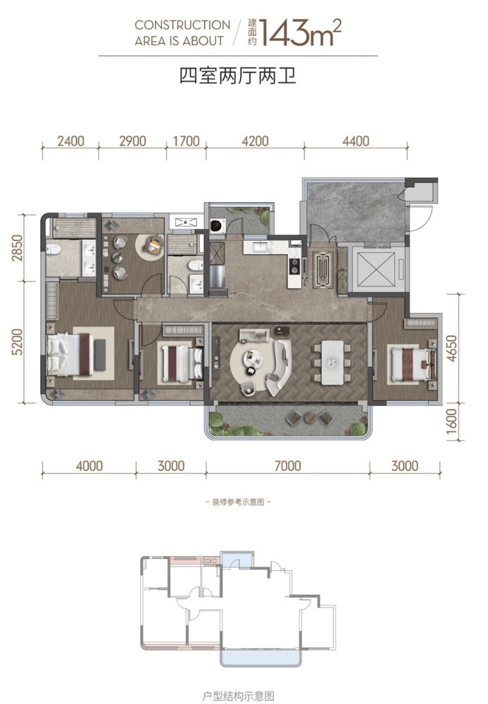 面积段:约143㎡、约170㎡全精装改善四房