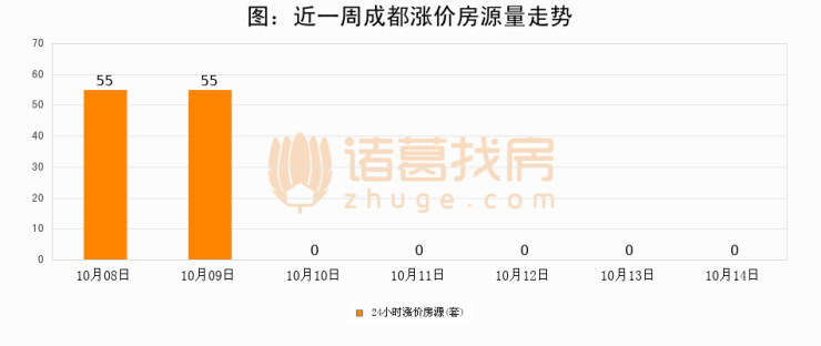 根据诸葛找房数据显示,成都24小时涨价房源量为0套,较10月13日持平。