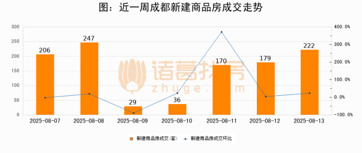 【成都成交日报】08月13日新房成交222套、二手房738套;涨价房源8套