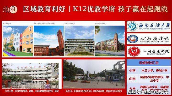 项目内规划有幼儿园、小学、中学;幼儿园:金苹果幼儿园以及公立的新都区机关幼儿园;小学:谕亭小学、香城小学分校、成都嘉祥七中外国语学校、新都蜀龙学校、三原外国语学校、成都实验外国语学校五龙山校区、成都狄邦肯思国际学校、石室中学北湖校区等中小学。
